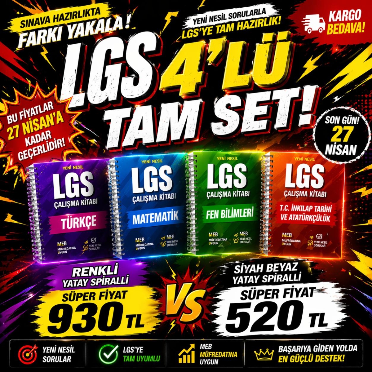 LGS 4'lü TAM SET (Renkli Yatay Spiralli Olarak Gelecektir. Dikey Tam Boy İsterseniz Dİkey Seçeneğini Sepete Eklerken İşaretleyebilirsiniz.) Fotokopinci -