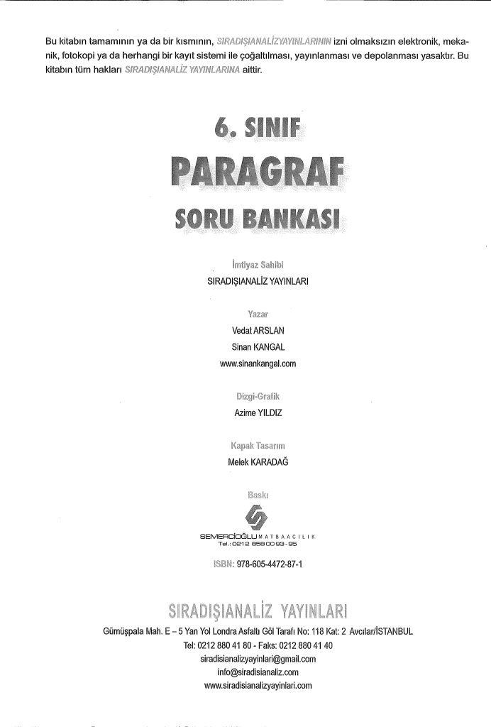 | Yayınevi | SIRADIŞIANALİZ YAYINLARI |